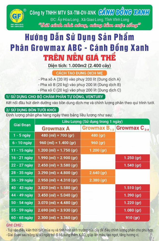 Tăng sức sống hạt phấn Hạn chế đen bông-thối bông Giảm rụng hoa-trái non Cuống trái to-tăng tỉ lệ đậu trái